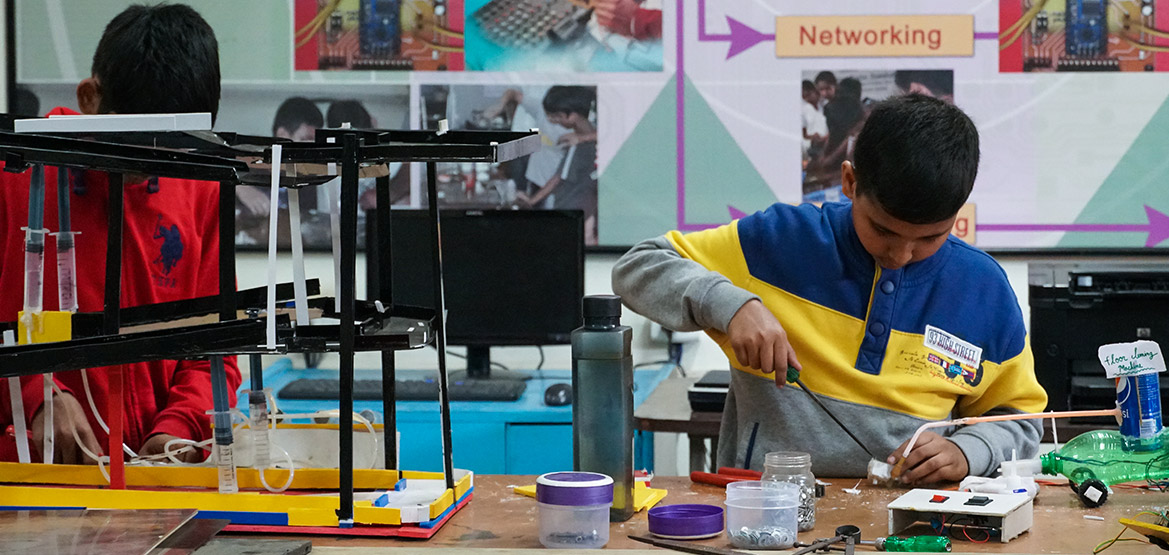 Idea Lab: This lab will have necessary basic facilities to pursue creative and innovative hobbies/activities that involve model making, basic science experimentation, design & fabrication of useful gadgets of practical use, teaching/learning kits or aids for better classroom transactions, testing of samples like soll, water, food items etc. a. Thod Phod Jod (Break & Remake) Corner: Students learn to do things with their own hands, dismantle, reassemble and remake devices/gadgets. b. Kabad Se Jugad (Build from scraps): Students learn more by doing things practically using day to day scrap. c. Idea Box: Students generate their own innovative ideas and create an idea bank The best ideas are chosen for experimentacion/model making/project work.